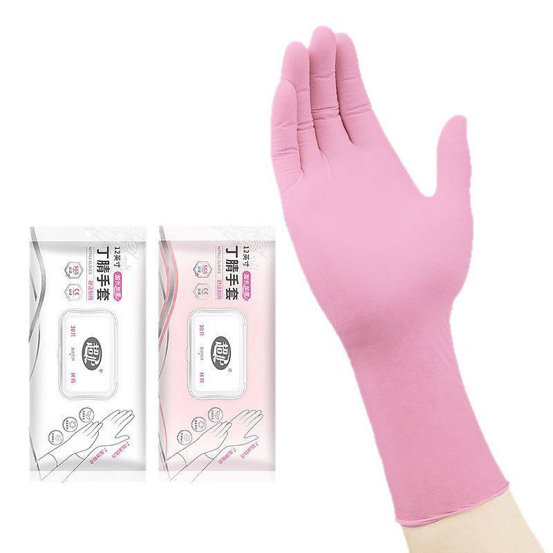 12-inch pink nitrile gloves [30 gloves per bag]