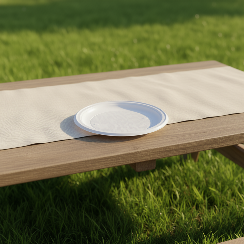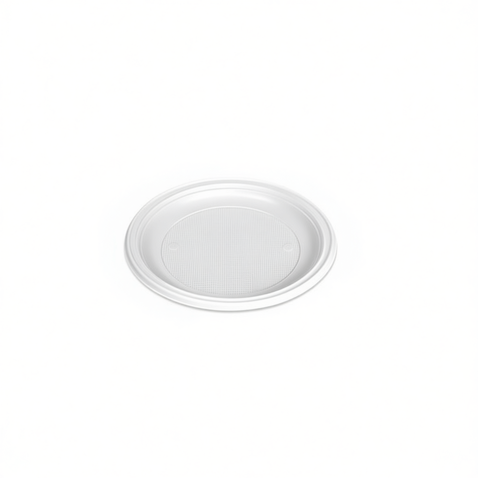 Assiettes et bols jetables en plastique PP PLATO LLANO 1000R réutilisables, rondes, blanches, 17 cm, en rouge