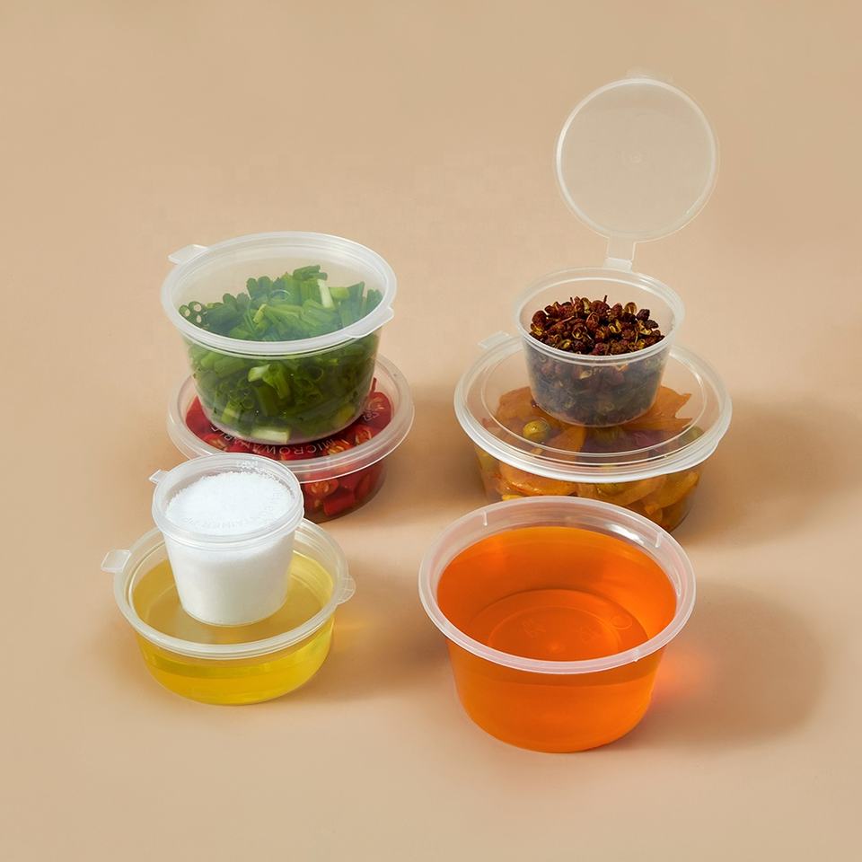 Gobelet à sauce jetable en PP, compatible micro-ondes, mini pot à trempette, bol à sauce avec couvercle, 1 oz, 1,5 oz, 2 oz, 3 oz, 4 oz, 4,5 oz, 5 oz