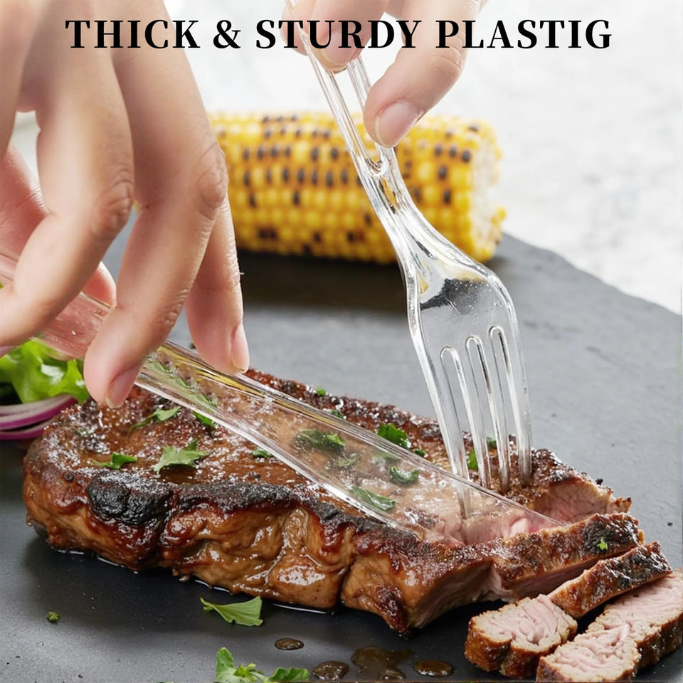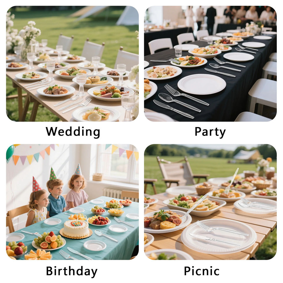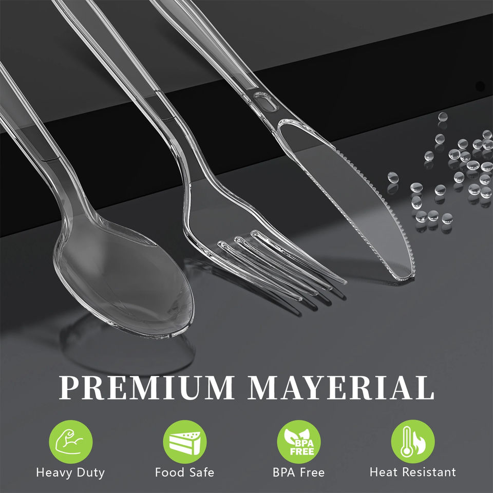 Ensemble de couverts classiques jetables en PP/PS biodégradable, écologique, sans BPA, recyclable, de qualité alimentaire, pour fêtes (fourchettes, couteaux, cuillères)
