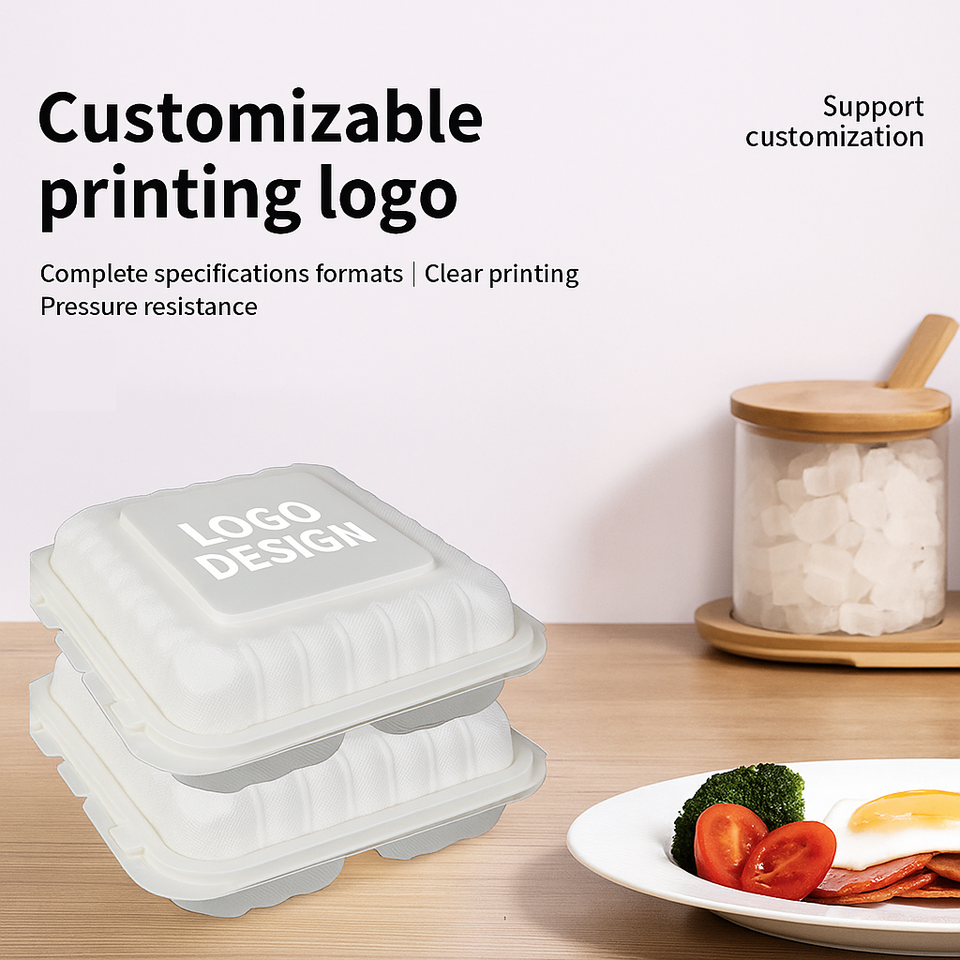 Boîte d'emballage jetable avec couvercle Boîte de restauration rapide à charnière Boîte à lunch à trois compartiments MFPP de qualité alimentaire unique 9 pouces