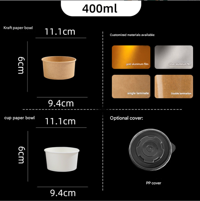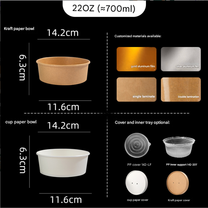 Bol alimentaire en papier jetable avec couvercle pliable pour un transport facile