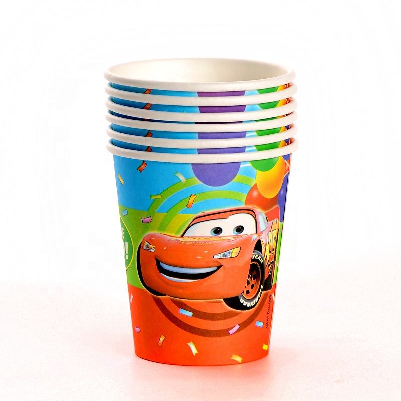 Gobelets en papier jetables pour fête, couleur unie, thème de fête d'anniversaire, fournitures pour fête