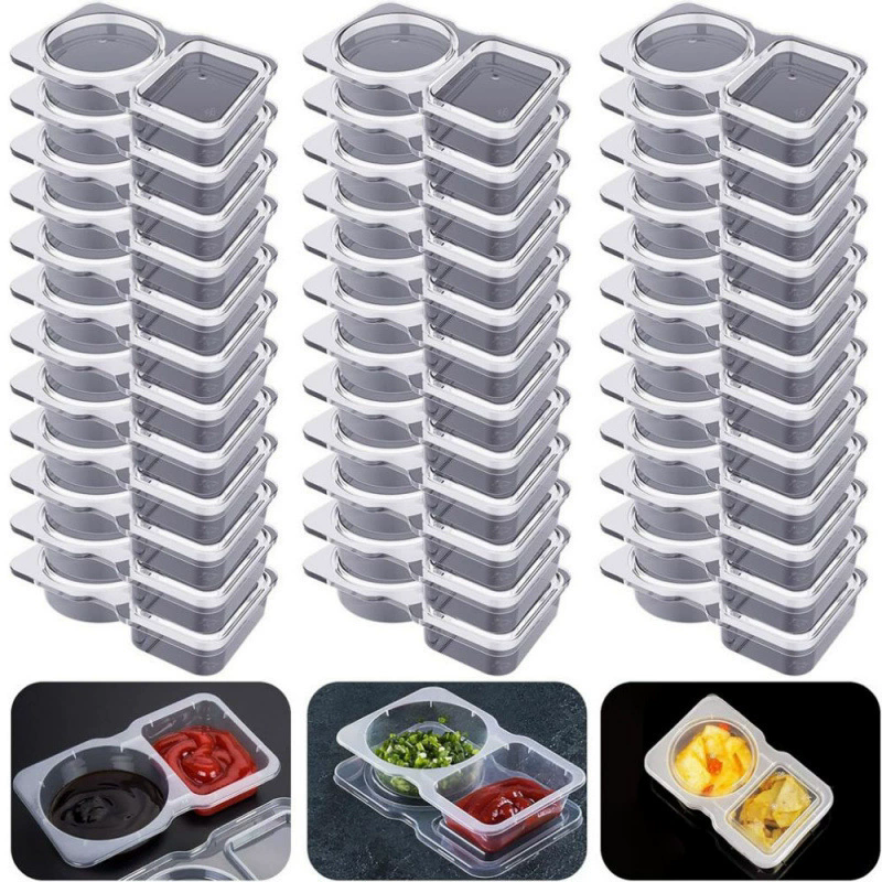 Contenants à sauce et gobelets à condiments en plastique jetables sans BPA 150 ml avec couvercle pour sauces à tremper, huile, vinaigre, chili, fruit de la passion, salade
