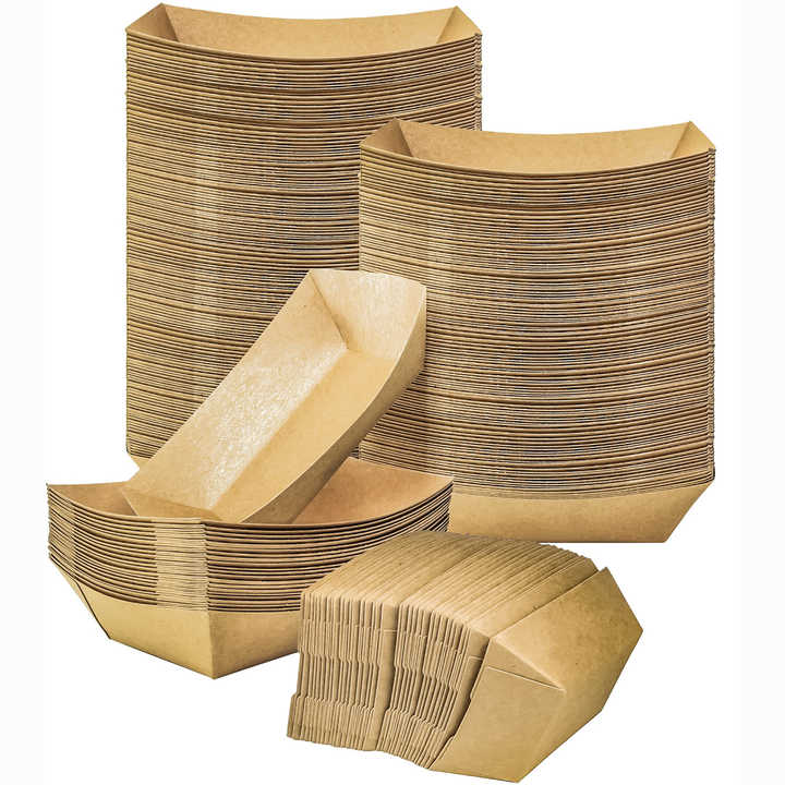 Barquette jetable rectangulaire en papier kraft biodégradable de qualité alimentaire pour frites, idéale pour la restauration rapide, options personnalisables