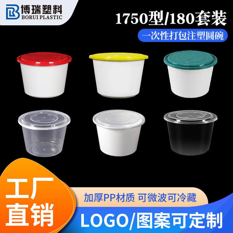 Disposable Round Bowl Takeout Container Microwave Safe Sealed Leak Proof Thickened Food Storage Travel Use 1750 Round Bowls
