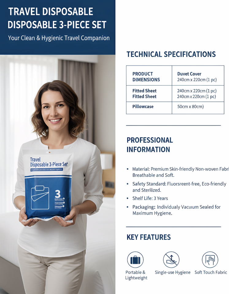 Draps de lit jetables en matériau SMMS PP, ensemble de trois pièces (drap, housse de couette, taie d'oreiller), draps de lit jetables anti-acariens