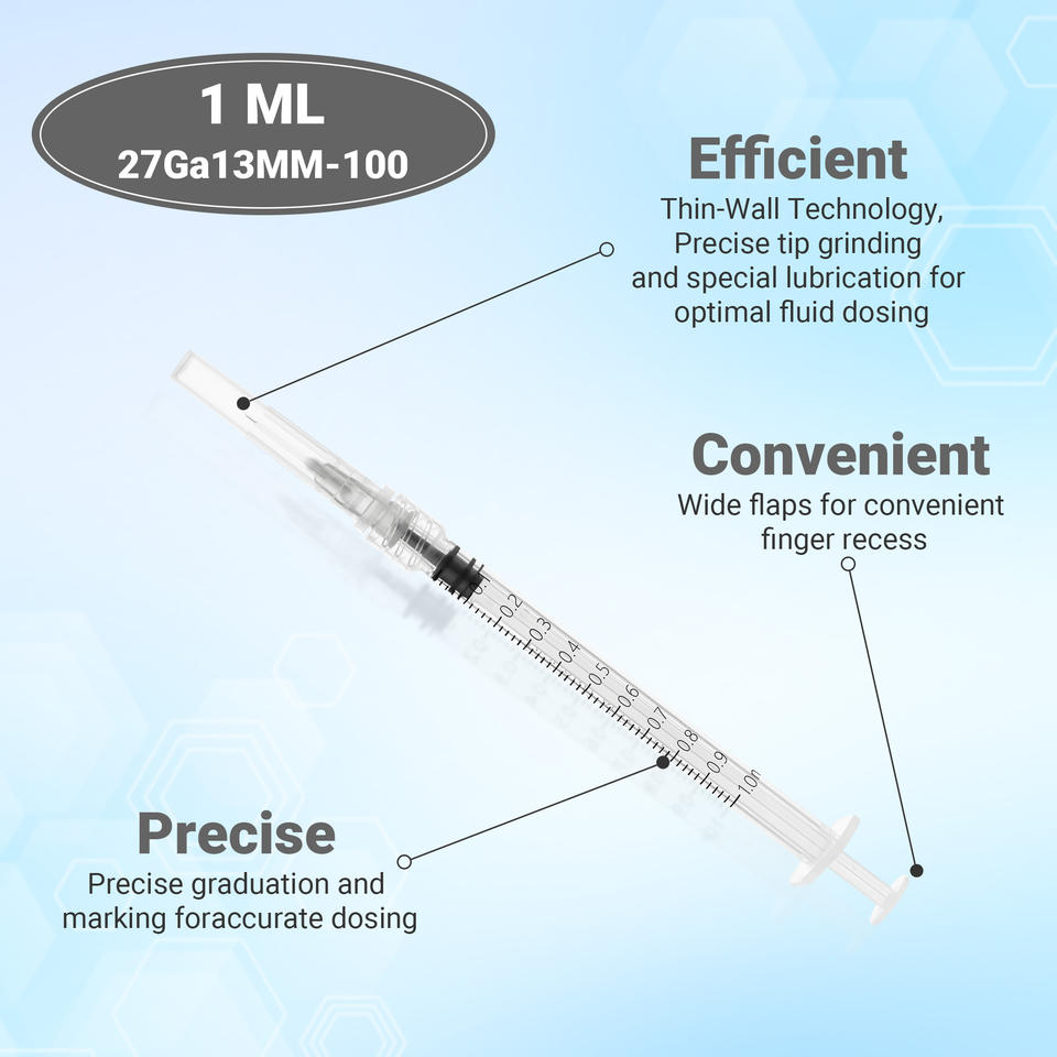 Seringue vétérinaire jetable de sécurité 1 ml Luer Lock 27G 13 mm