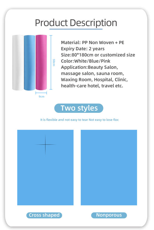 Draps de lit jetables pour spa, housse de lit imperméable, tissu non tissé, rouleau de draps de lit