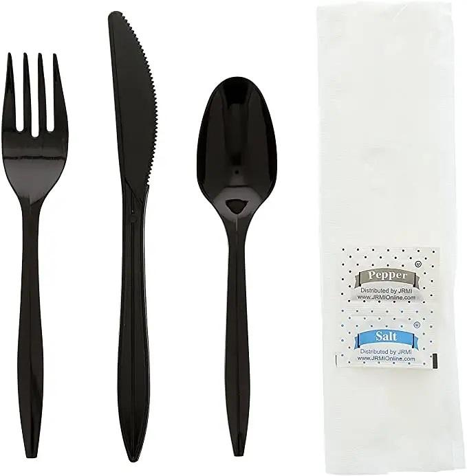 Ensemble de couverts:Couteau + fourchette + cuillère + serviette + sel et poivre