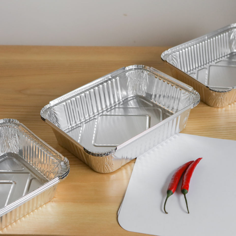 Disposable Tin Foil Baking Trays with Lids Food Grade Takeaway Aluminum Foil Tableware Fast Food Container 2000ml