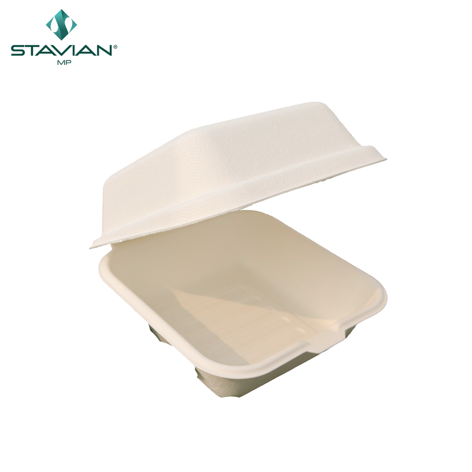 Vaisselle et articles de table jetables fabriqués au Vietnam, ODM personnalisable, contenants alimentaires biodégradables en forme de coquille de palourde de 6x6 pouces