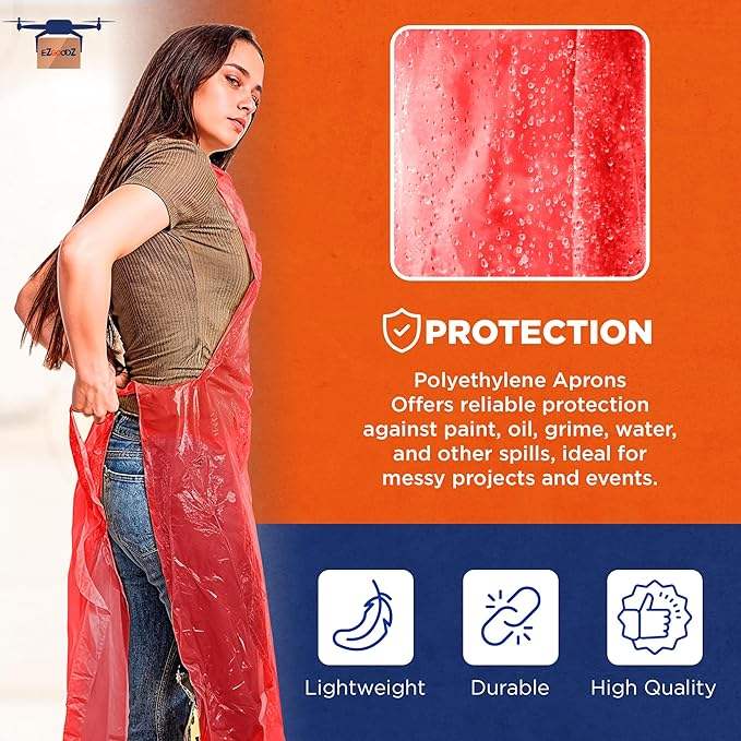 Tabliers jetables imperméables avec manchons de protection, tabliers de protection en plastique parfaits pour la peinture, la cuisine et les travaux ménagers quotidiens