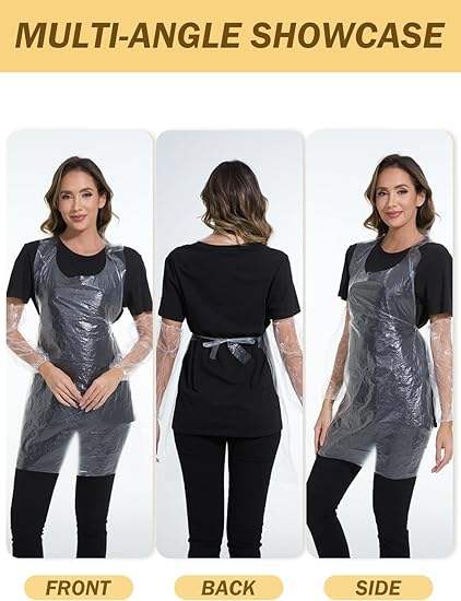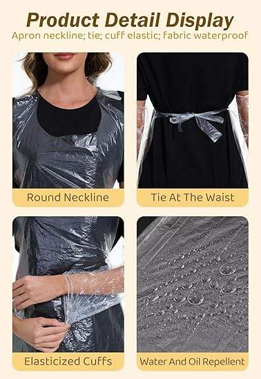 Tabliers jetables imperméables avec manchons de protection, tabliers de protection en plastique idéaux pour la peinture, la cuisine et les travaux ménagers quotidiens