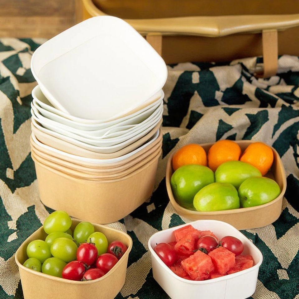 Boîte d'emballage carrée en papier kraft blanc jetable pour fast-food à emporter pour le déjeuner bols à salade bols à assiettes en papier écologiques