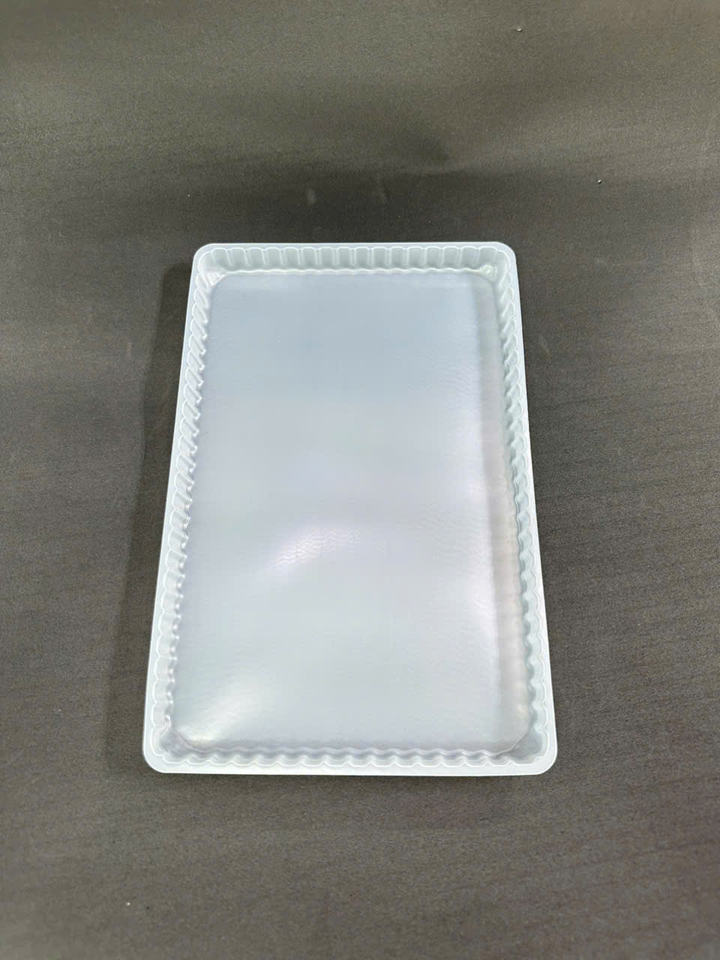 Barquette jetable en plastique PE blanc, idéale pour l'emballage et la présentation professionnels de sushis et de nouilles
