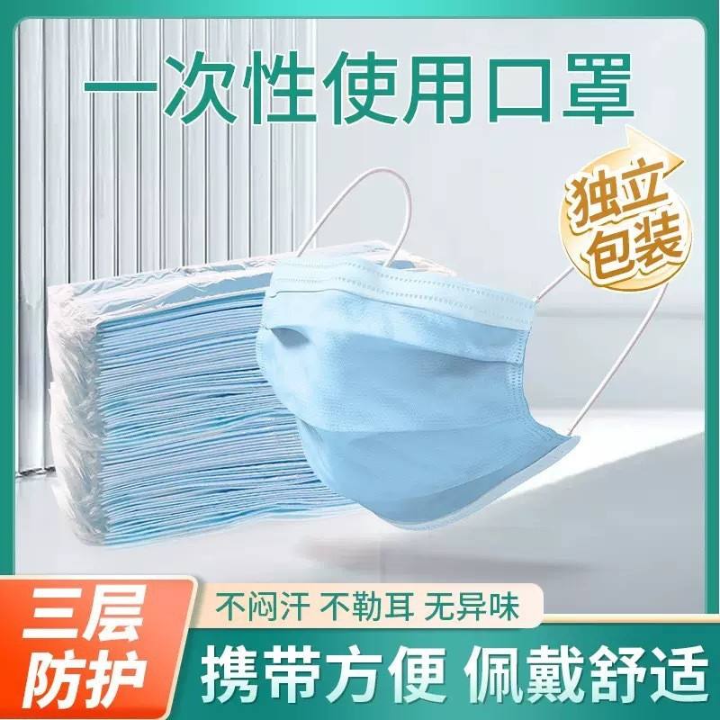 Masques jetables pour le visage, emballés individuellement, en tissu non tissé à trois couches, respirants, anti-poussière, protecteurs, respirants