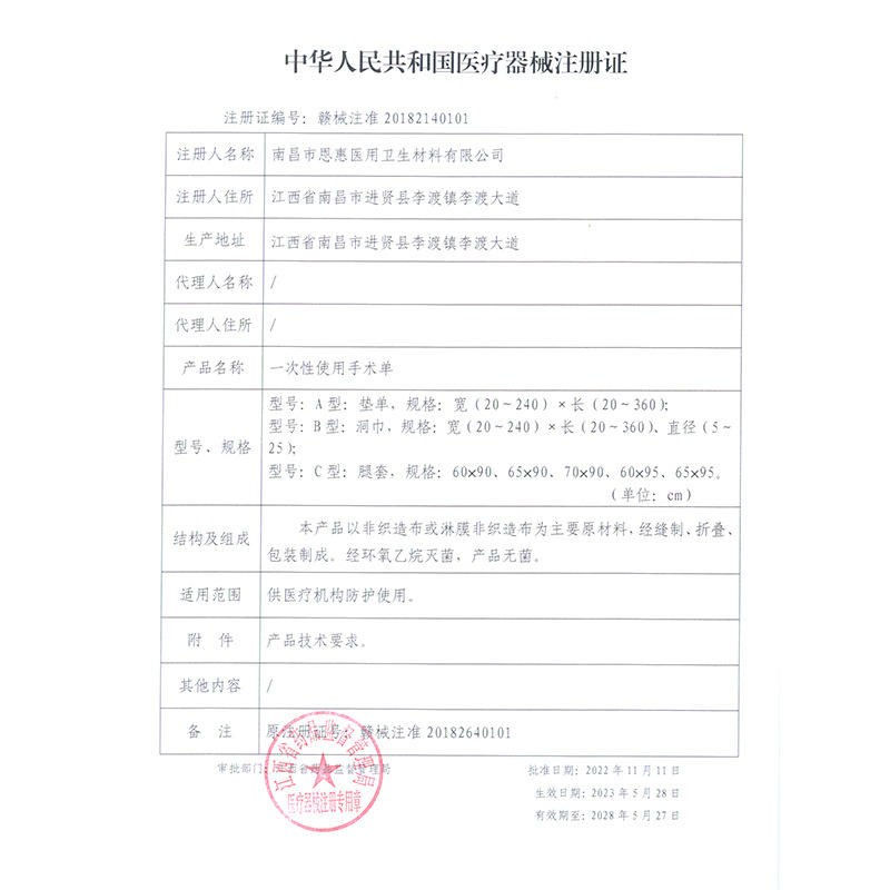 Drug (Medical Device) Approval Number:Jiangxi Medical Device Registration Certificate 20182140101