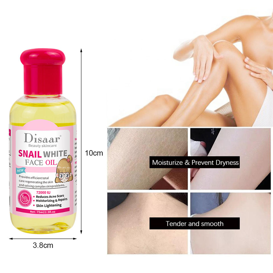 Huile Essentielle Pure Dissar 75ml Éclaircissante Raffermissante Hydratante Réparatrice à l'Extrait de Bave d'Escargot pour le Visage