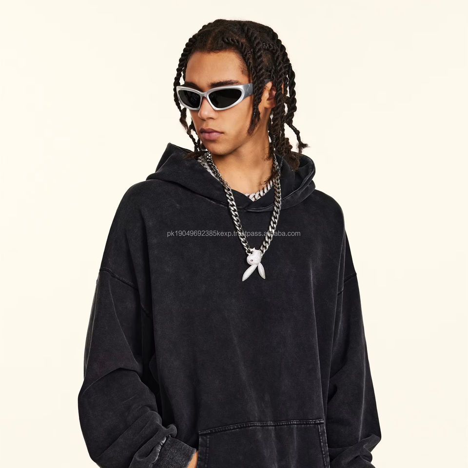 Sweat à capuche oversize avec logo Distress, sans cordon, poche, pull, délavé au soleil, lourd, 100% coton, brodé, hiver, ODM