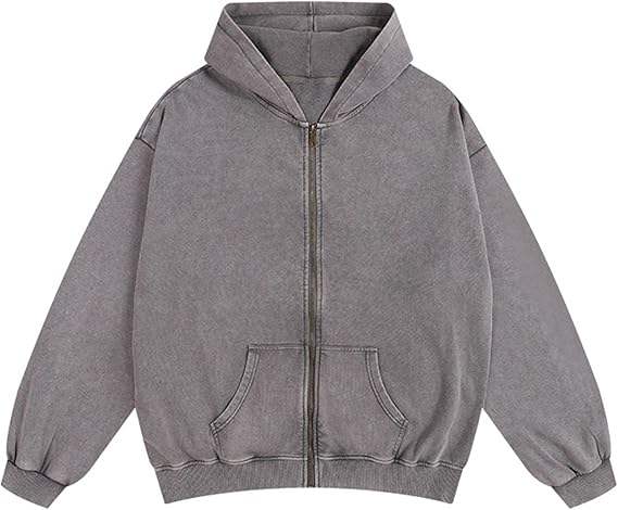 Sweat à capuche zippé 100 % coton délavé effet usé pour homme, coupe oversize, style streetwear, hiver, personnalisable, vente en gros, usine chinoise