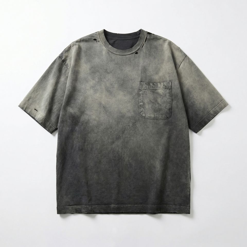 T-shirt oversize délavé à l'acide | T-shirt vintage délavé à poches en tissu épais | Fabricant de vêtements streetwear sur mesure OEM