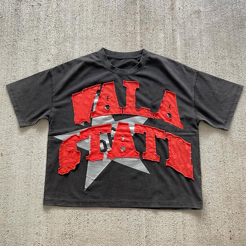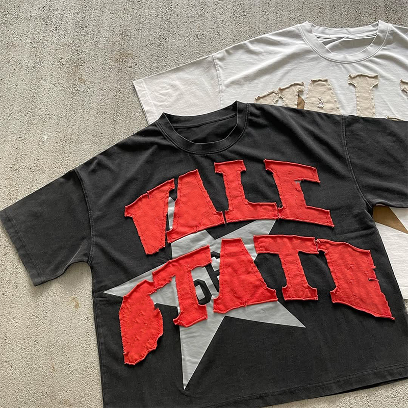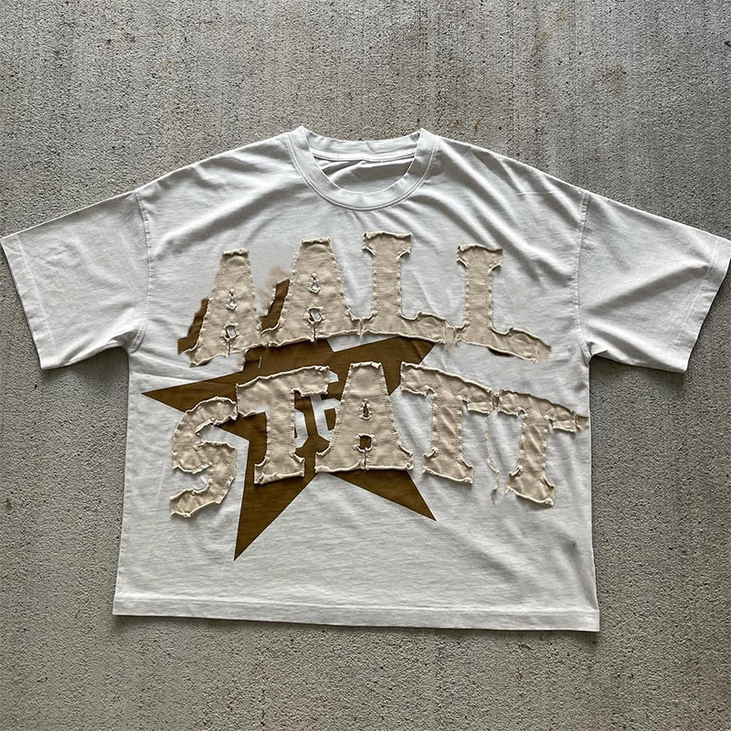 Applique en détresse Patch brodé lettre 100% coton surdimensionné High Street hommes T-Shirts pierre unisexe