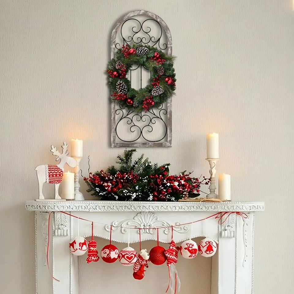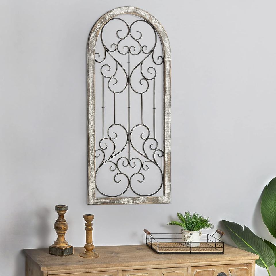 Décoration murale rustique en bois vieilli style ferme, plaque murale en arche avec finition peinte antique, style vintage