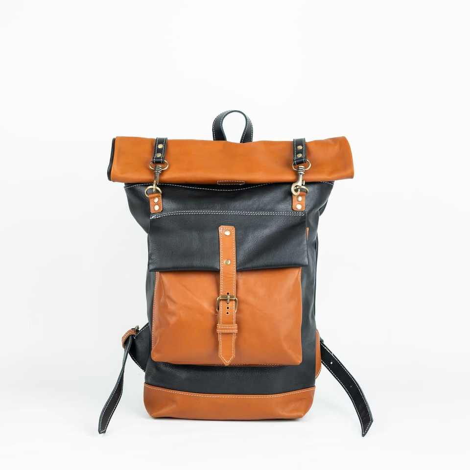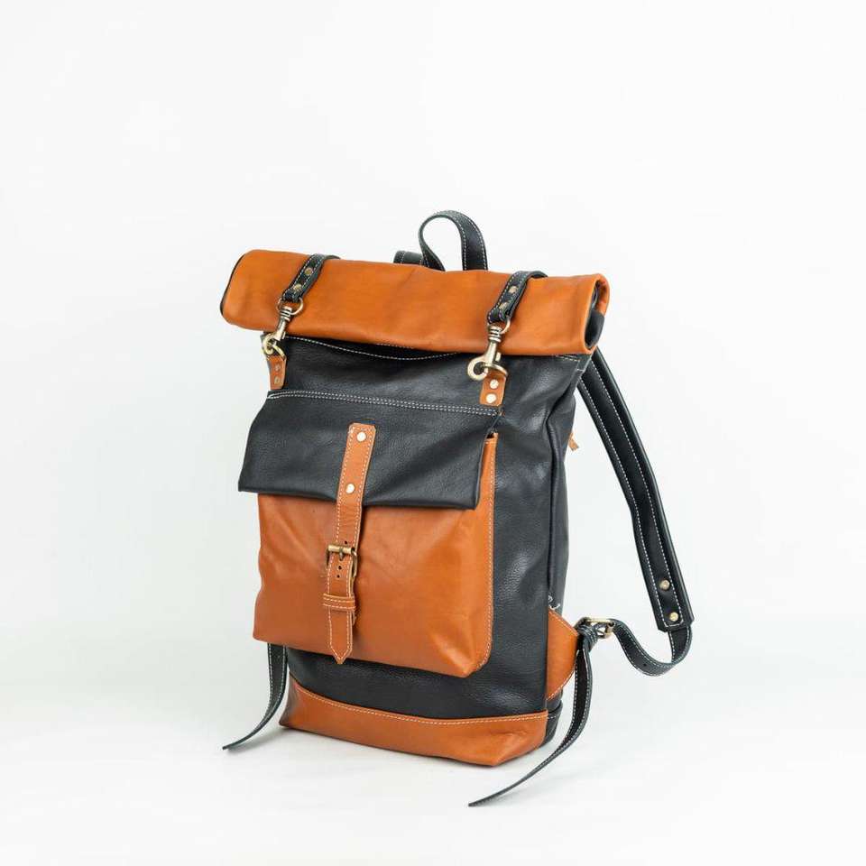 Sac à dos en cuir à enroulement