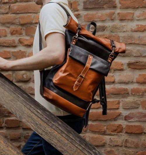 Sac à dos à enroulement en cuir véritable