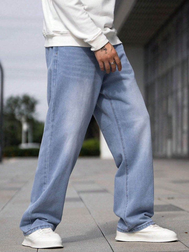 Jeans droits pour homme, effet usé, taille haute, coupe régulière, denim 100% coton, style streetwear punk pour un look stylé