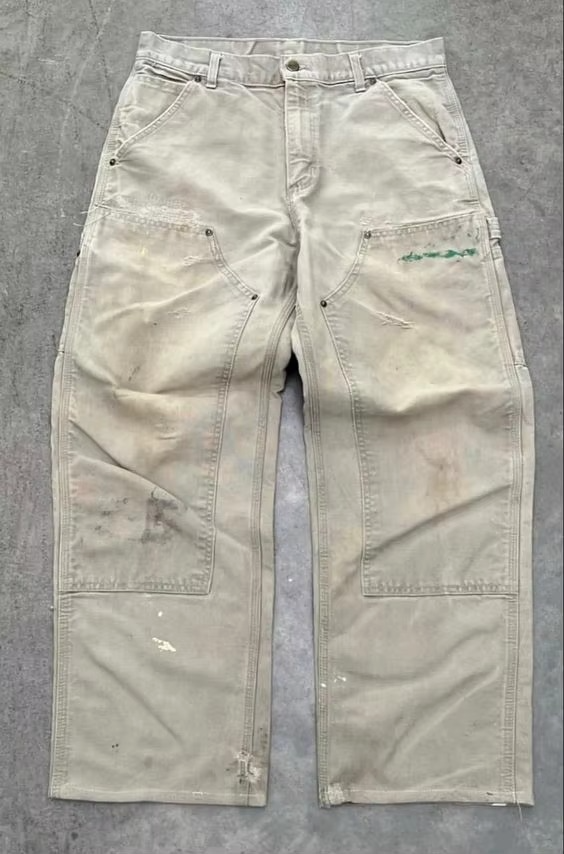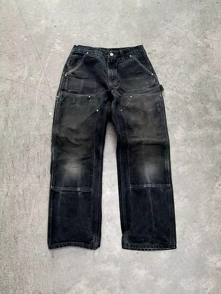 Jean cargo vintage déchiré et délavé pour homme, style double genou, coupe charpentier