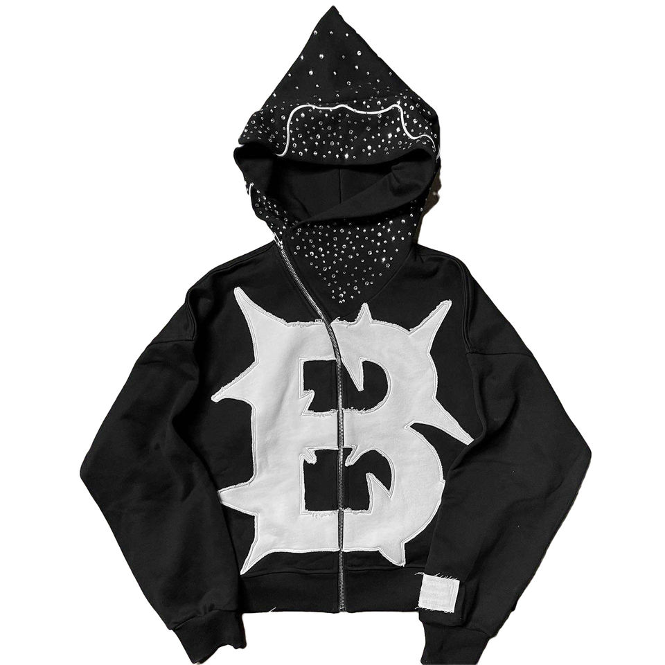 Patch en détresse broderie Vintage vieilli Applique couture 500gsm sweat à capuche hommes à capuche strass à capuche