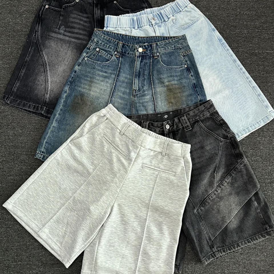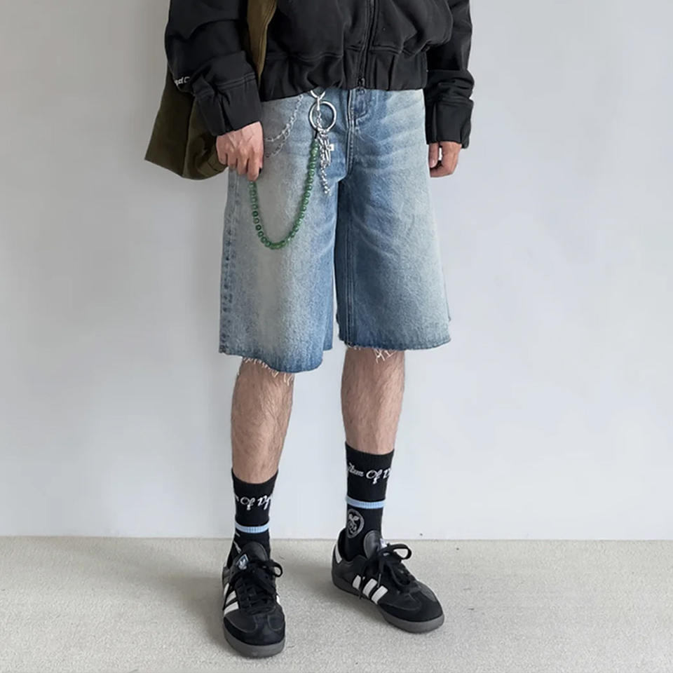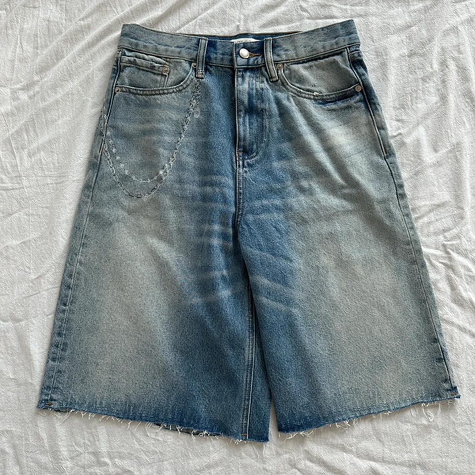 Shorts en jean déchirés à ourlet brut pour homme – Style vintage streetwear, collection été, design d'usine, jorts amples pour homme
