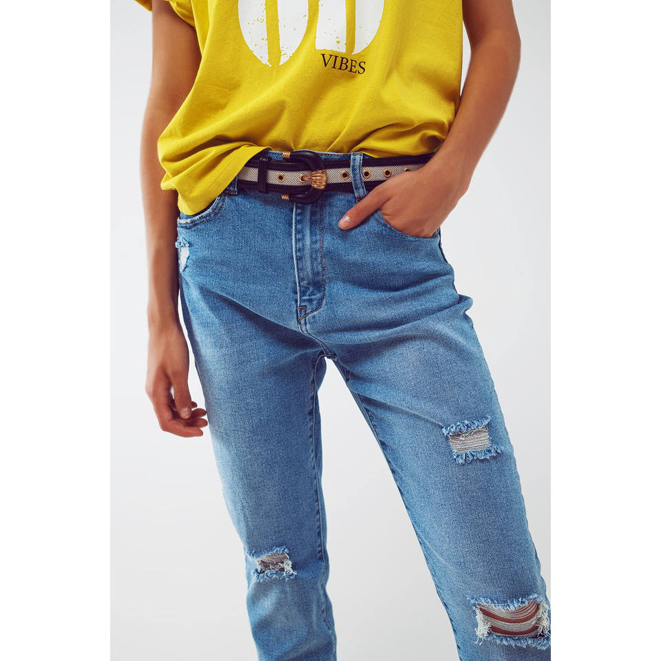Distressed Regular Jeans in Light Blue Wash