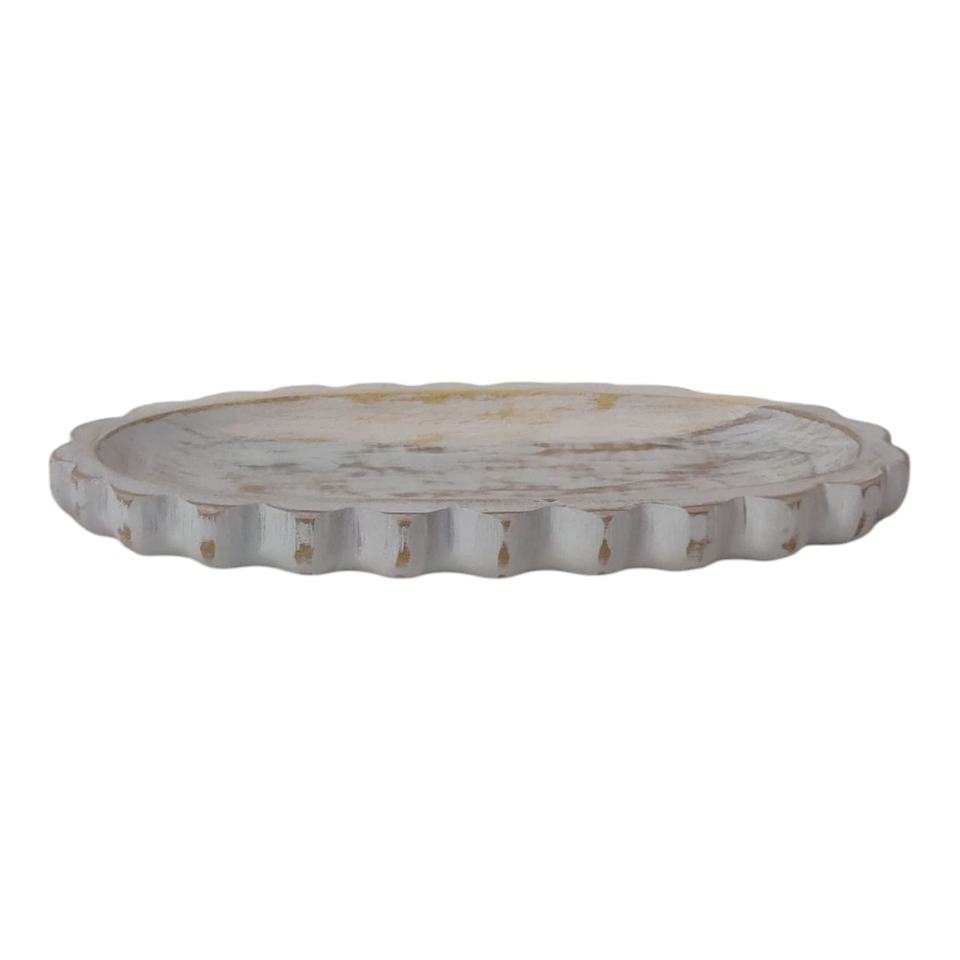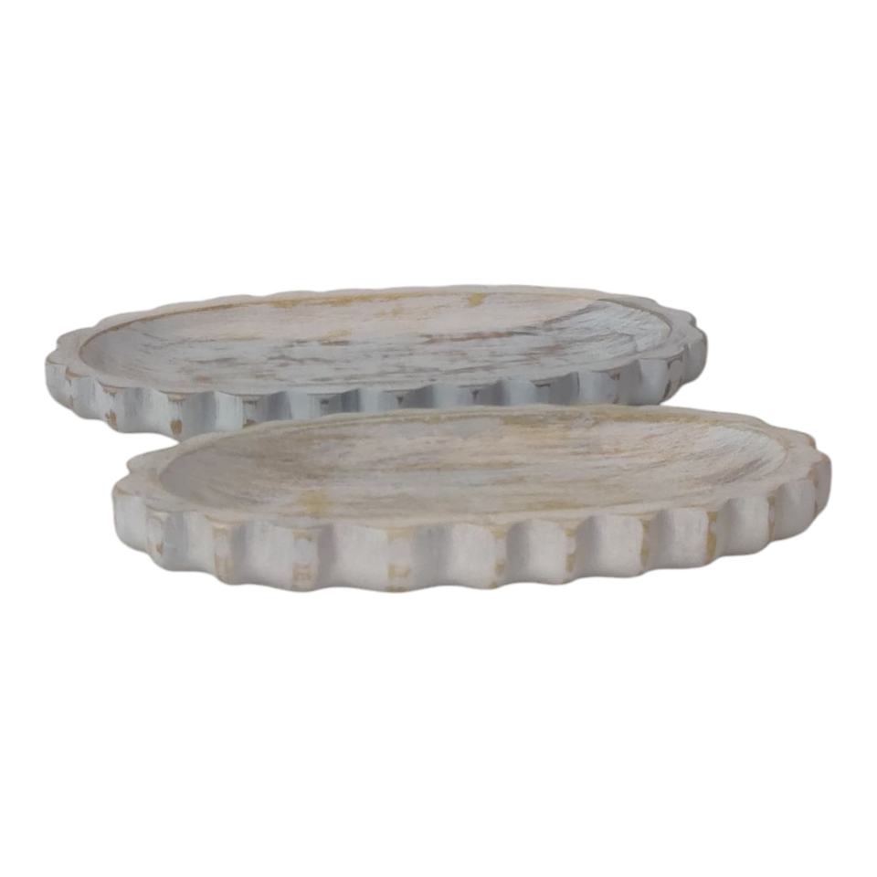 Plateaux de service en détresse de forme ovale texturée Ensemble de 2 bois de manguier lavé à la main décor de Table de cuisine à la maison de Noël