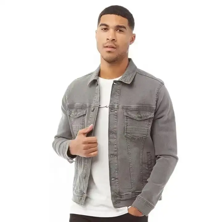 Veste en jean vintage pour homme, coupe ajustée, style délavé à l'acide, pour un extérieur décontracté, mode urbaine