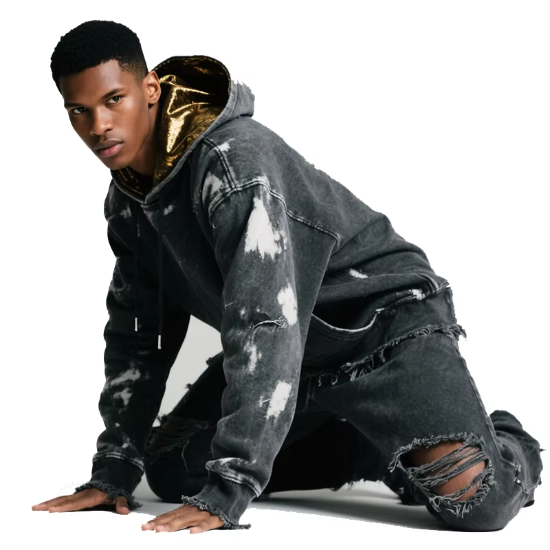 Sweat à capuche délavé avec doublure dorée pour homme 2026 Streetwear Sweat à capuche surdimensionné tendance décontracté Pull