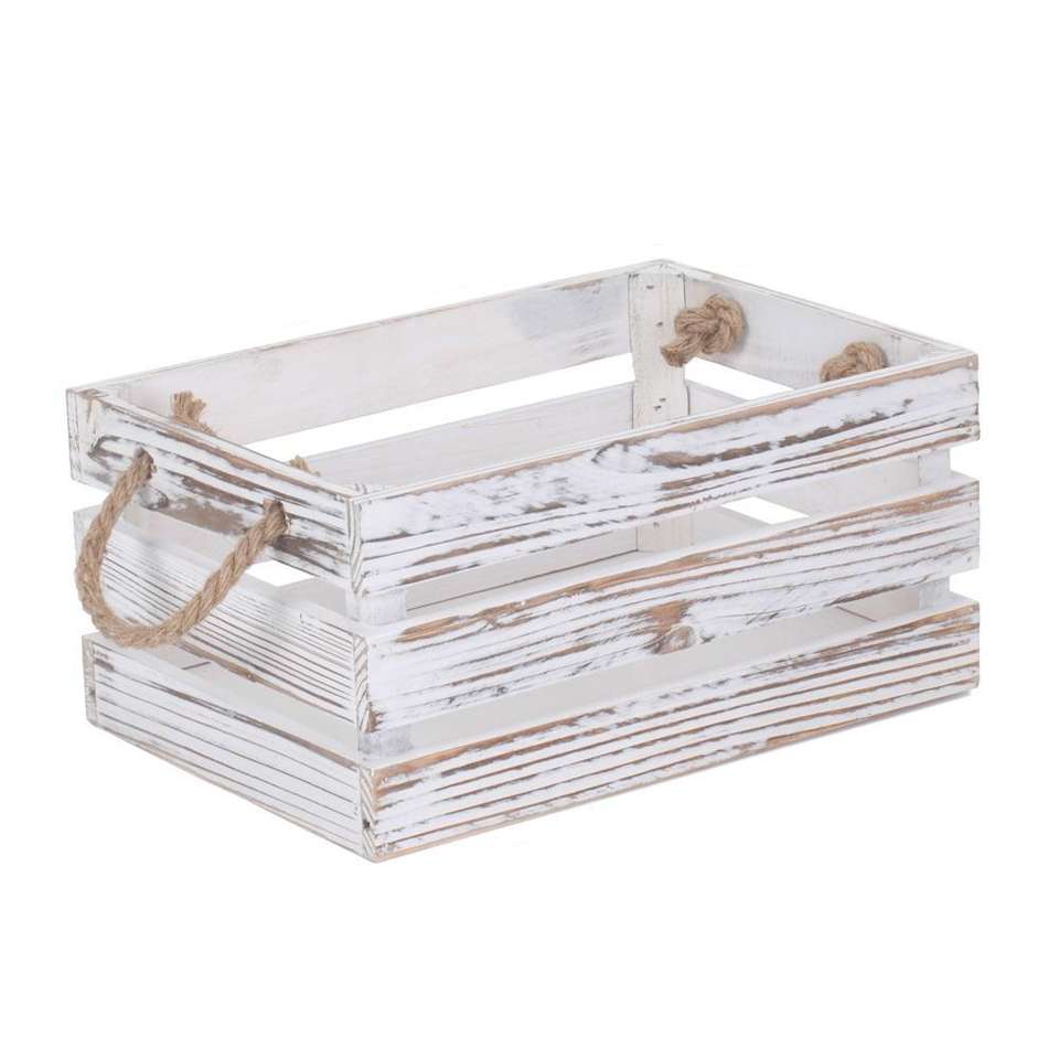 Boîtes en bois à poignée de corde blanche en détresse Article décoratif pour la maison