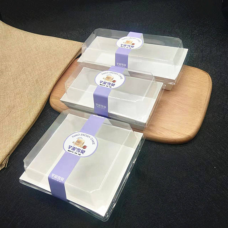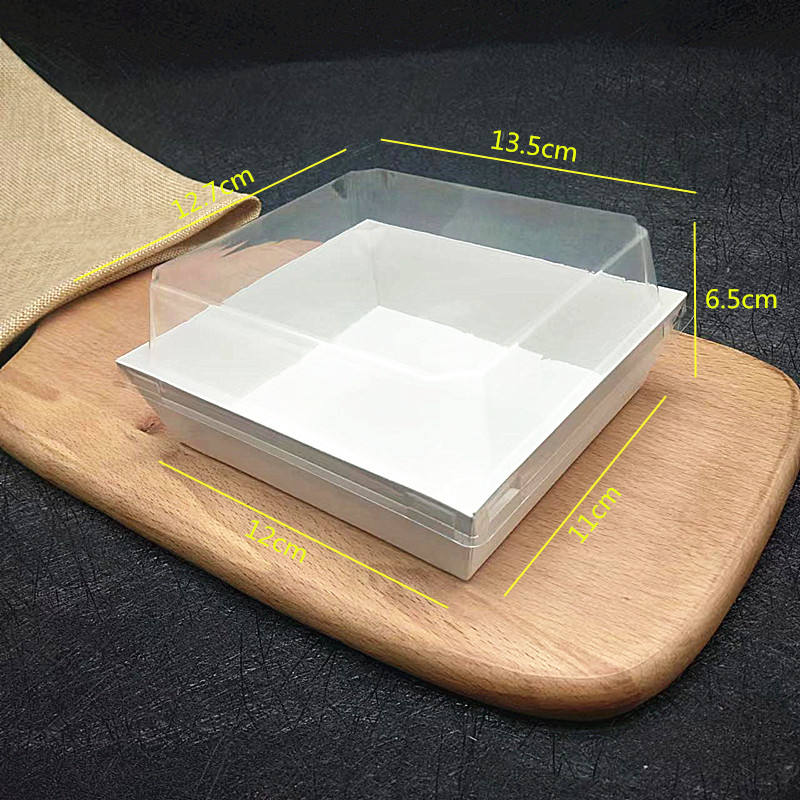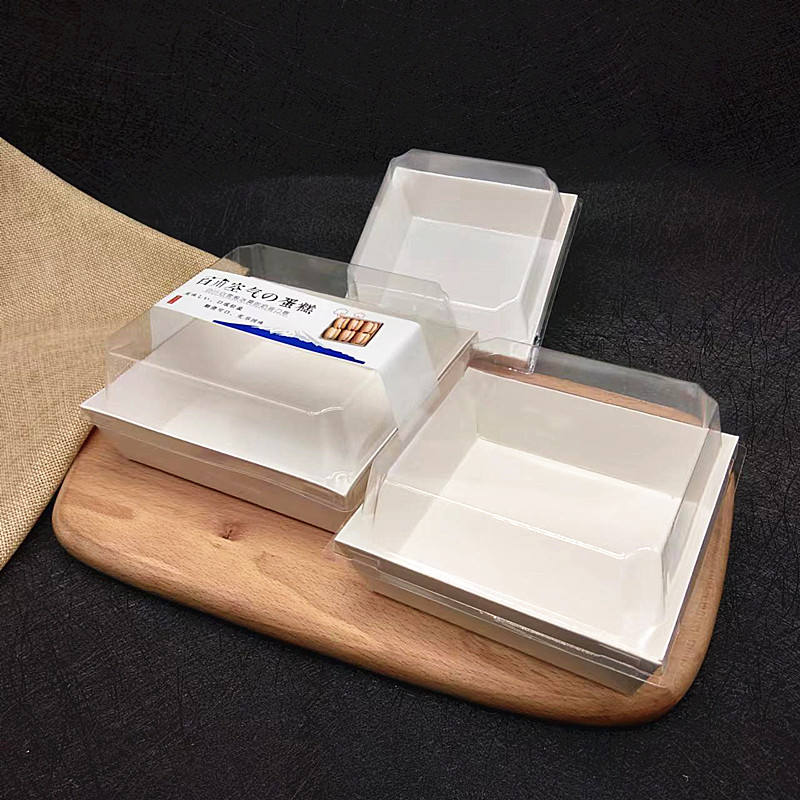 Distribuer des barquettes en papier jetables de qualité alimentaire avec couvercle en PET anti-buée pour sandwich, sushi, tranche de gâteau, logo personnalisé, pâtisserie