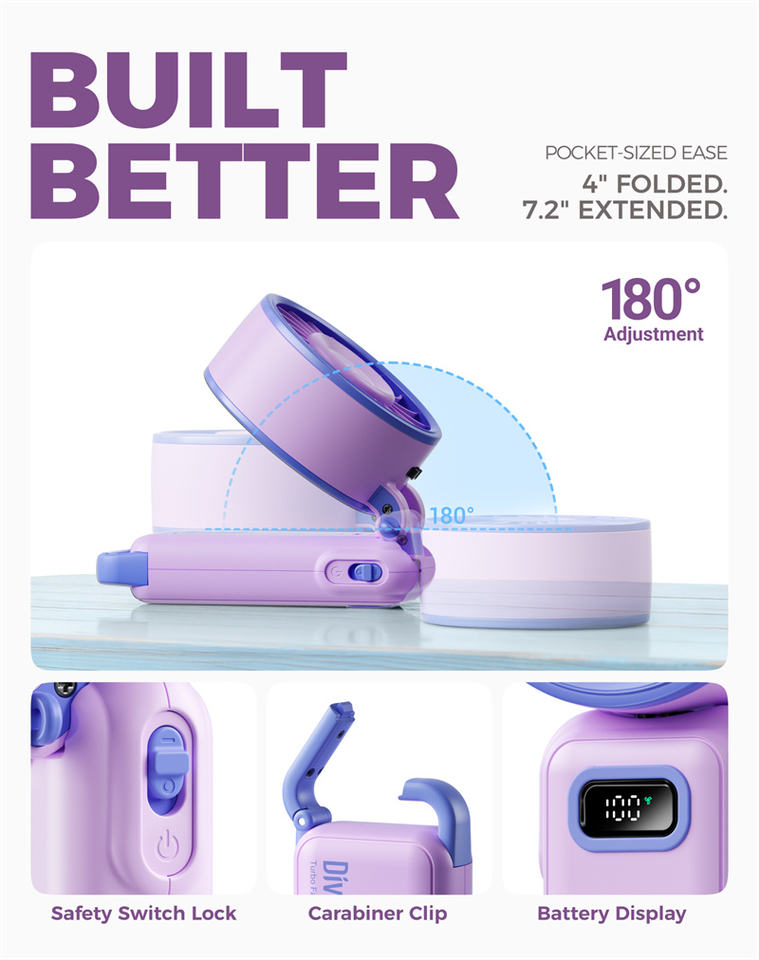Ventilateur pliable rechargeable Diveblues Fanzy Fan à batterie lithium, super puissant, turbo jet, portable