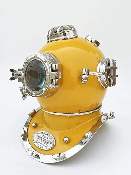 Casque de plongée US Navy Mark V pour plongée sous-marine casque en aluminium solide casque décoratif jaune poli