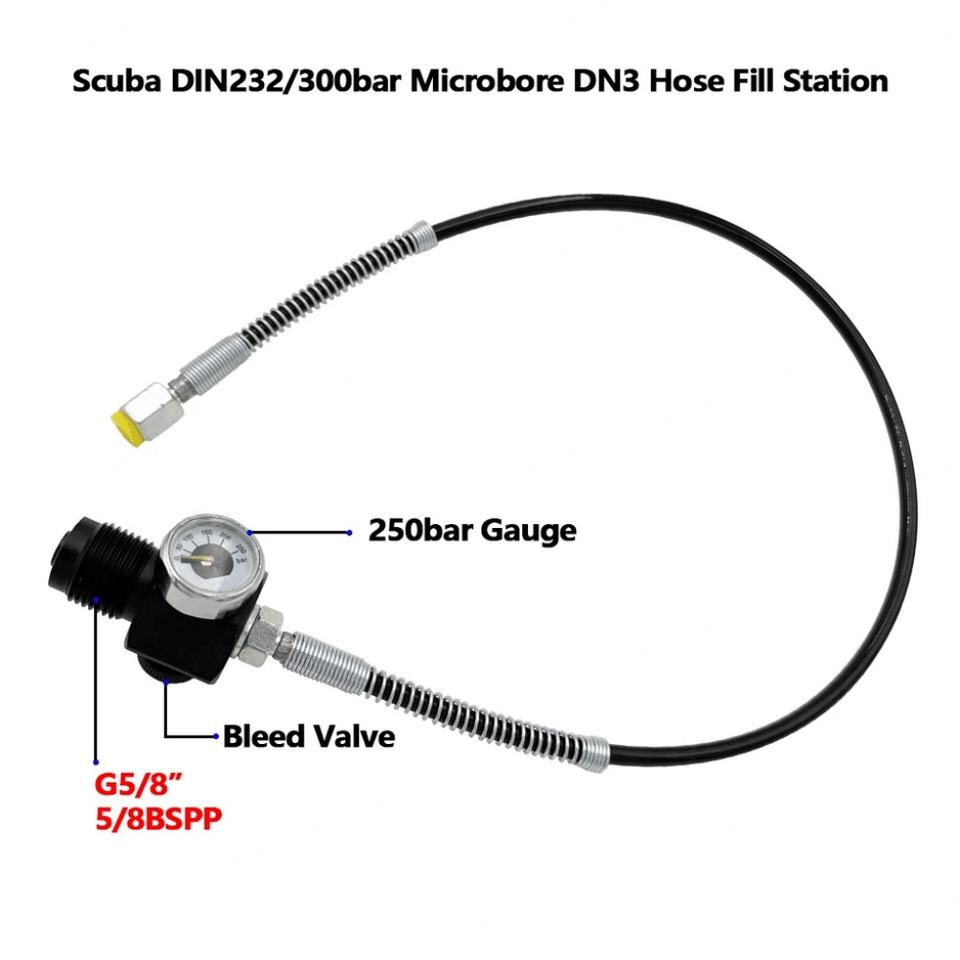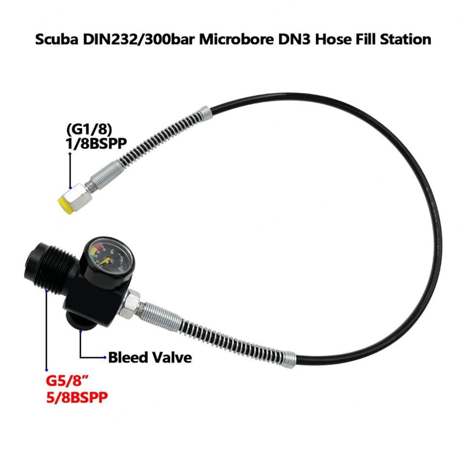 Adaptateur de remplissage pour station de plongée sous-marine 5/8BSPP G5/8 DIN300 avec manomètre et tuyau micro-poreux DN3 pour gonflage d'air