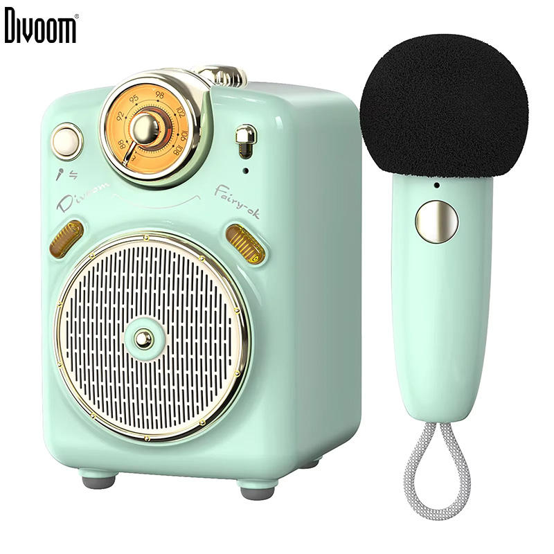 Divoom Fairy-OK Mini haut-parleur karaoké rétro avec microphone Fonction karaoké avec changement de voix, radio FM, carte TF
