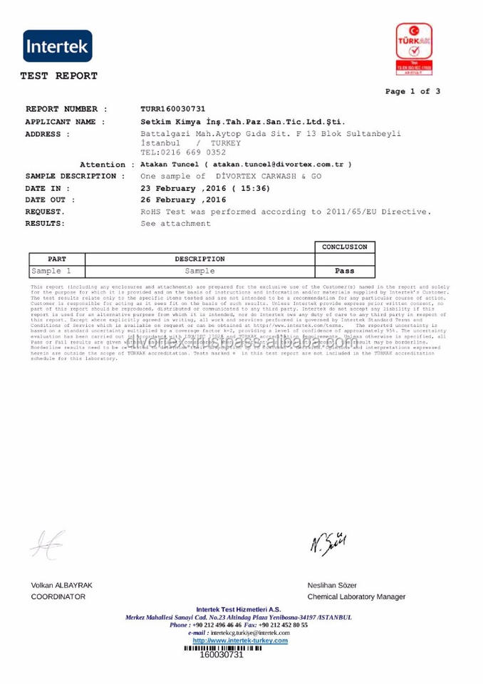 Certificat:ROSH, ATTEINDRE, FS, TDS
