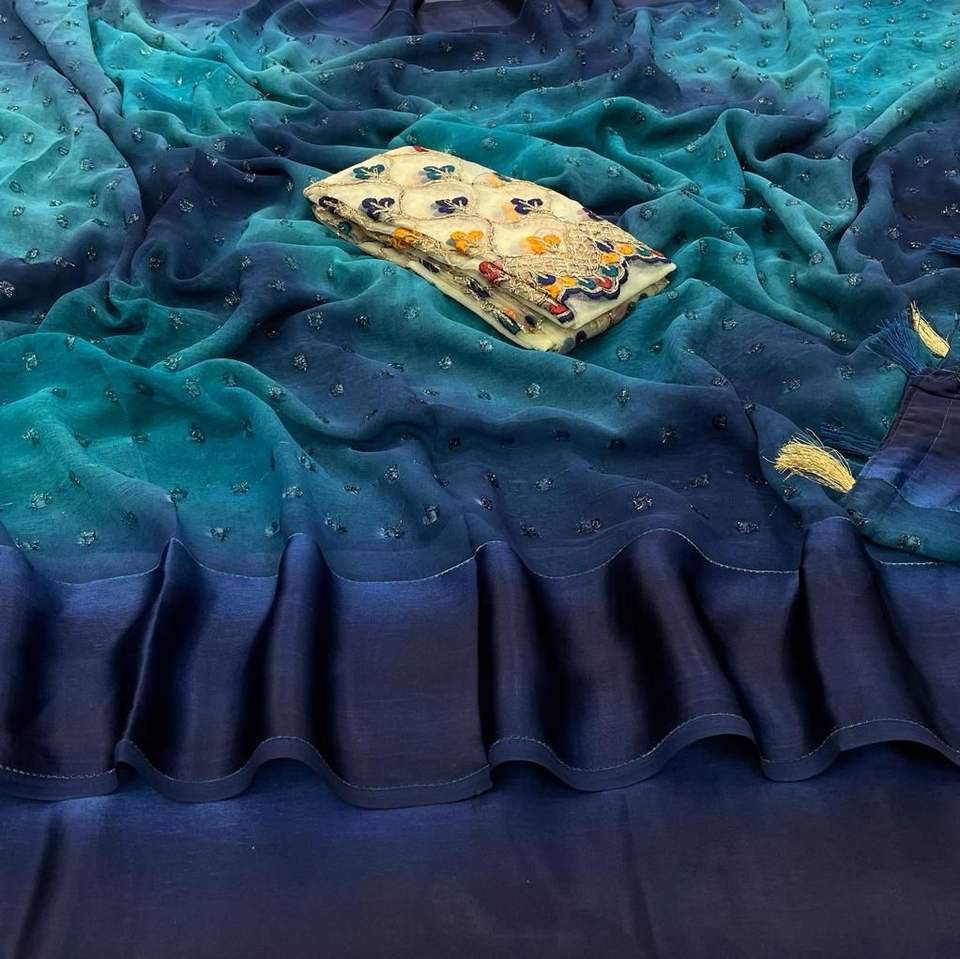 Nom du produit:Blouse Saree en mousseline de soie avec broderie travail