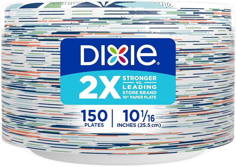 Assiettes en papier Dixie, 10 pouces, 150 pièces, 2 fois plus résistantes, compatibles micro-ondes, résistantes à l'eau, résistantes aux coupures