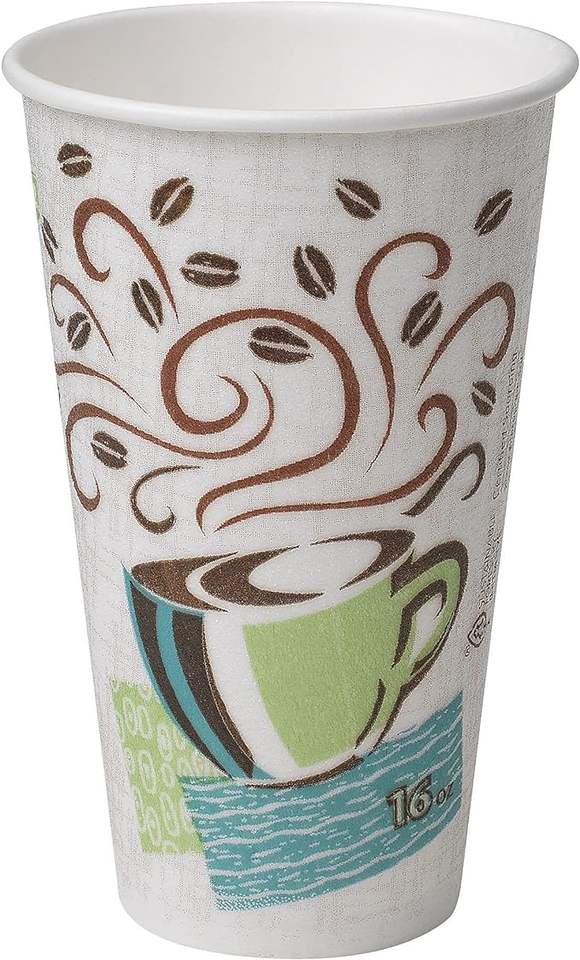 Dixie PerfectTouch 16 Oz. Insulated Kraft Paper Cup Double Wall Design Hot Coffee Pizza 500 Count White/Multicolor Coffee Haze