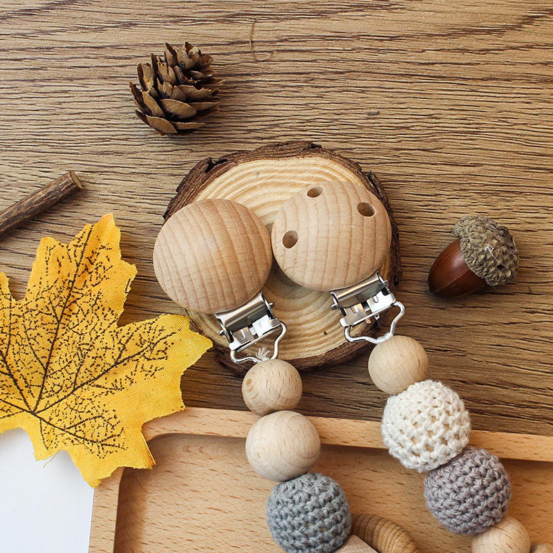 Attache-sucette DIY en bois de hêtre de 30 mm, ronde avec trois trous, accessoire de dentition pour bébé de 0 à 24 mois, jouet souple unisexe