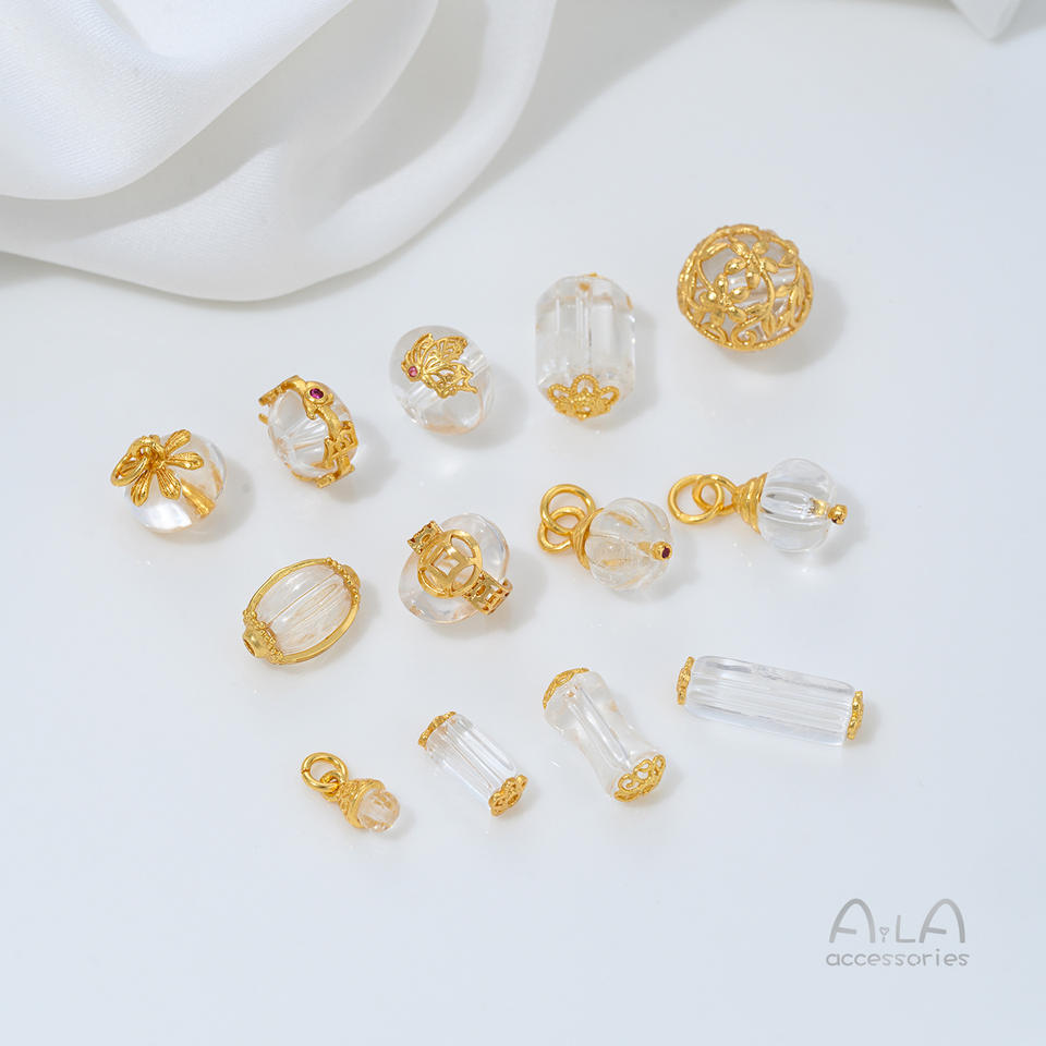 Bracelet, collier et accessoire DIY avec une forte rétention de couleur en or sable incrusté de perles de cristal blanc naturel, Bucket Be
